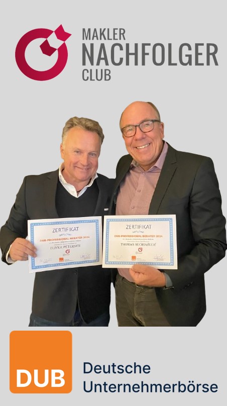 Zertifikat DUB Professional Berater Oliver Petersen und Thomas Suchoweew vom Makler Nachfolger Club
