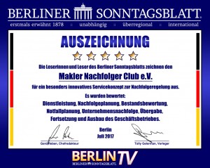 Auszeichnung vom Berliner Sonntagsblatt Makler Nachfolger Club