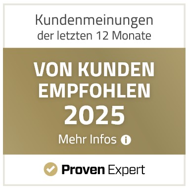 Die Auszeichnung „ProvenExpert Top Dienstleister“ wird vom unabhängigen Bewertungsportal ProvenExpert an Unternehmen und Organisationen vergeben, die durch herausragende Leistungen und hohe Kundenzufriedenheit überzeugen. Sie basiert auf einer Vielzahl positiver Kundenbewertungen und gilt als wichtiges Signal der Qualität sowie als verlässlicher Vertrauensbeweis für potenzielle neue Kunden.